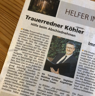 Die Trauerrede, Grabrede und Trauerfeier sollte das Leben von Verstorbenen widerspiegeln, schöne Erinnerungen lebendig halten und gleichzeitig einen würdevollen Abschied darstellen. (Matthias Köhler)