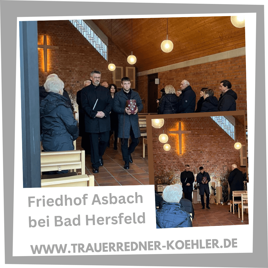 Ausgebildeter, zertifizierter Trauerredner und Grabredner für Trauerfeiern, Trauerzeremonien, Beerdigungen, Bestattungen, Naturbestattungen auf Friedhöfen, Trauerhallen, Ruheforst, Friedwald, Ruhewald für Schwalmstadt mit seinen Ortsteilen und Friedhöfen Treysa und Ziegenhain, Allendorf an der Landsburg, Ascherode, Dittershausen, Florshain, Frankenhain, Michelsberg, Niedergrenzebach, Rommershausen, Rörshain, Trutzhain und Wiera.
