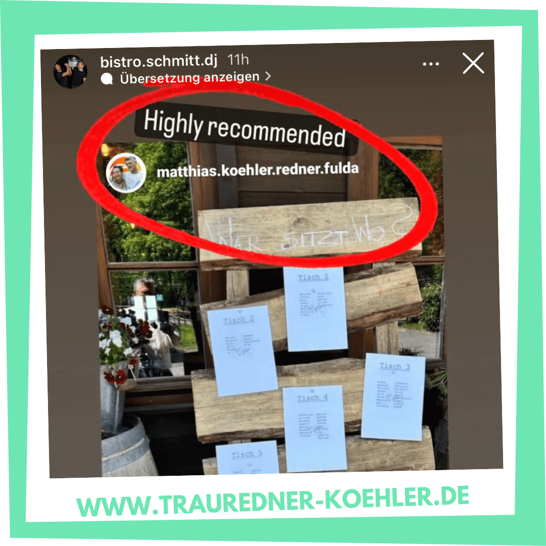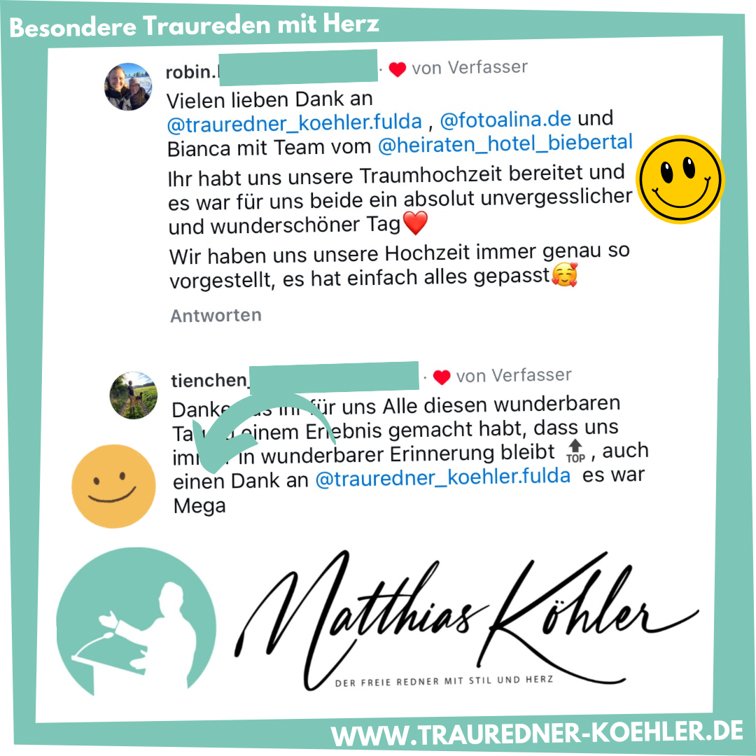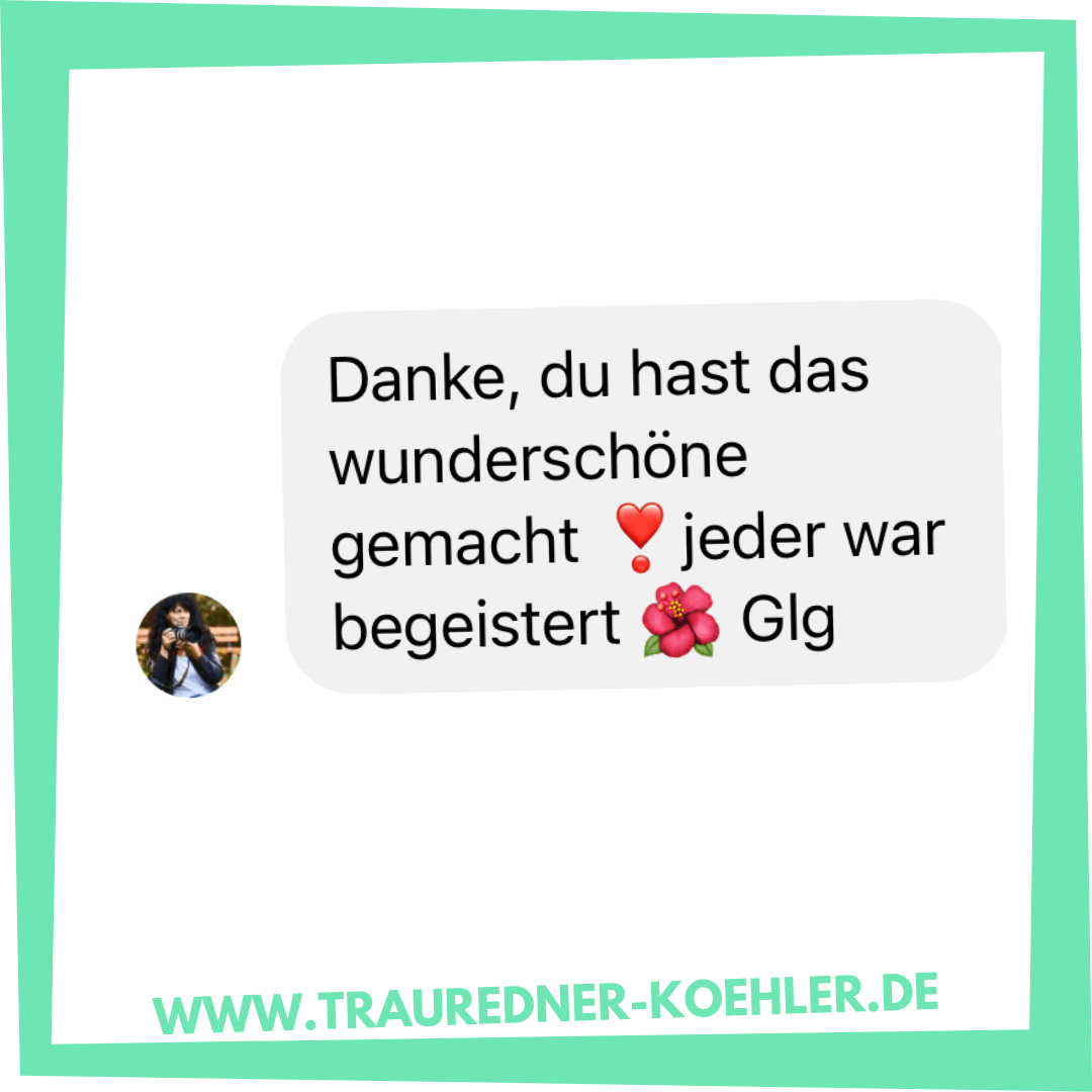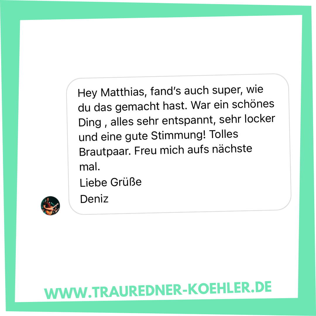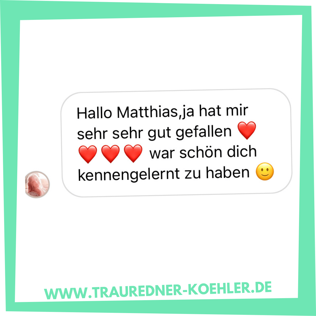 Nach der Traurede haben wir von all unseren Gästen gesagt bekommen das ihnen die Traurede und auch das Auftreten von Matthias sehr gut gefallen hat.