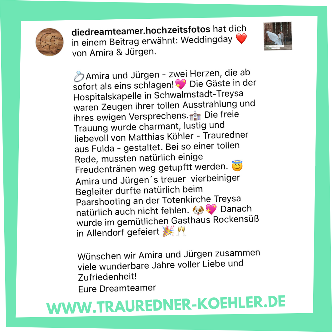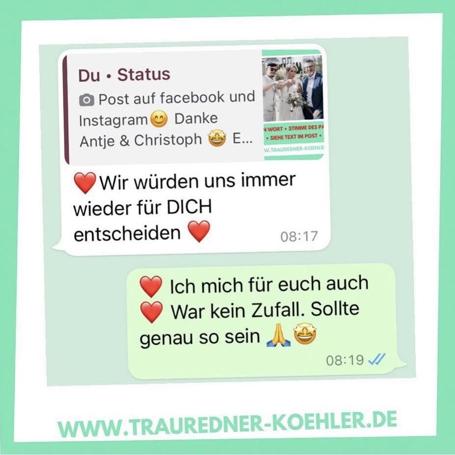 4 Wochen nach ihrer freien Trauung haben die beiden mir noch diese schöne Zeilen gesendet – Danke ihr zwei: