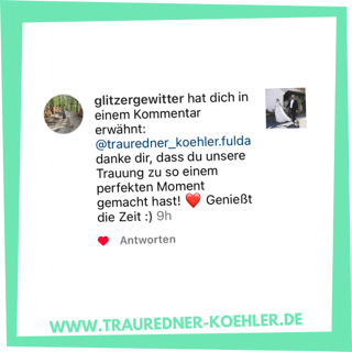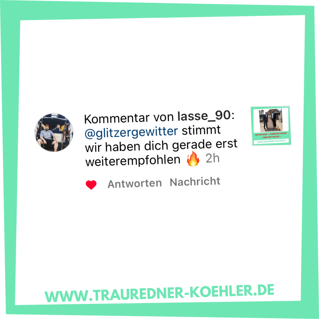 So sprechen meine Brautpaare und Kollegen:innen über mich, die mich als Trauredner schon live in Aktion erlebt haben :) – Für Trauungen und Hochzeiten in Deutschland und gerne auch weltweit für meine Brautpaare unterwegs!