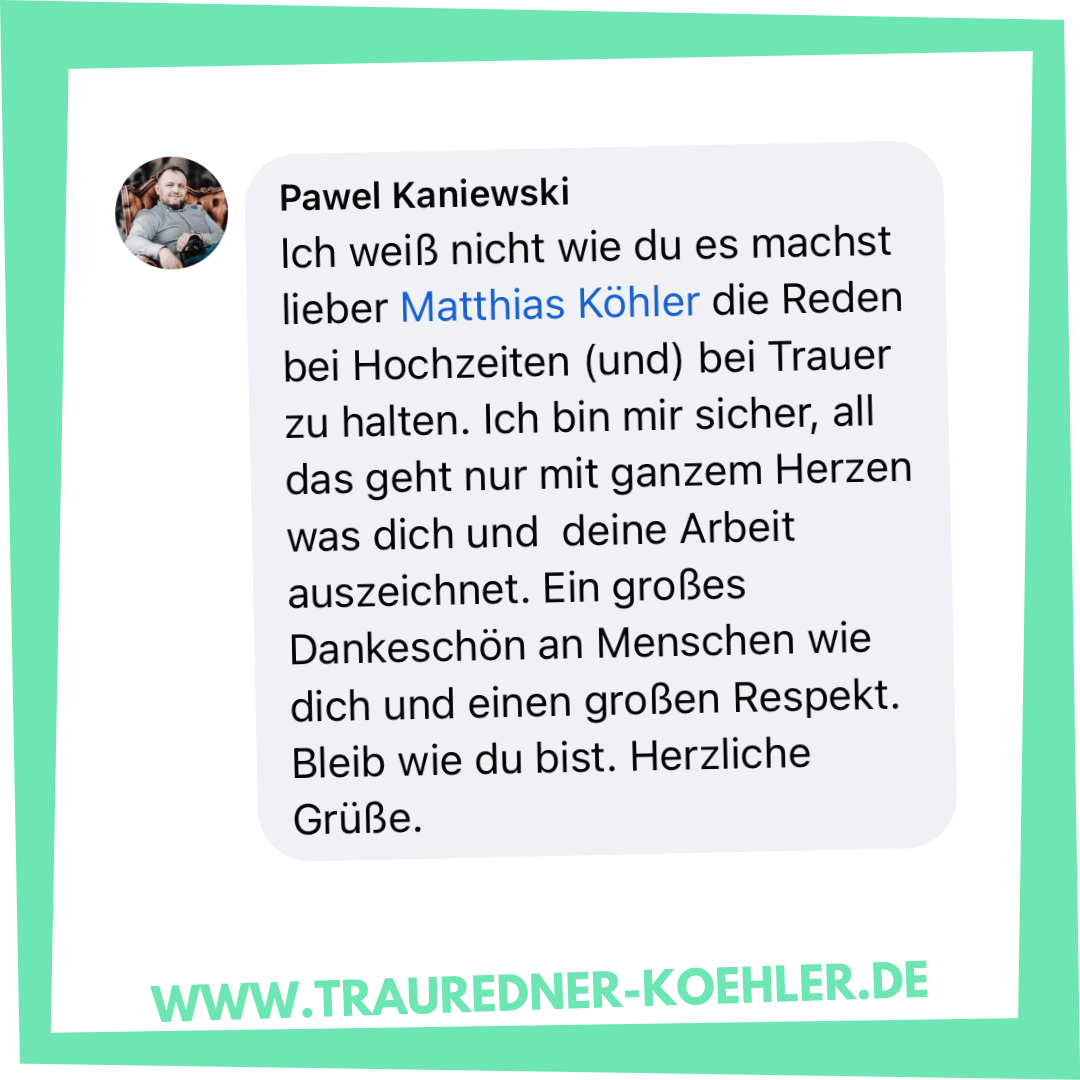 Sein toller Support an mich ✔ Da ich Matthias als Rednerkollege sehr schätze, habe ich ihn an einem Freitag angeschrieben und gefragt, ob er mir seinen Support für eine Trauerzeremonie gebeten könnte.