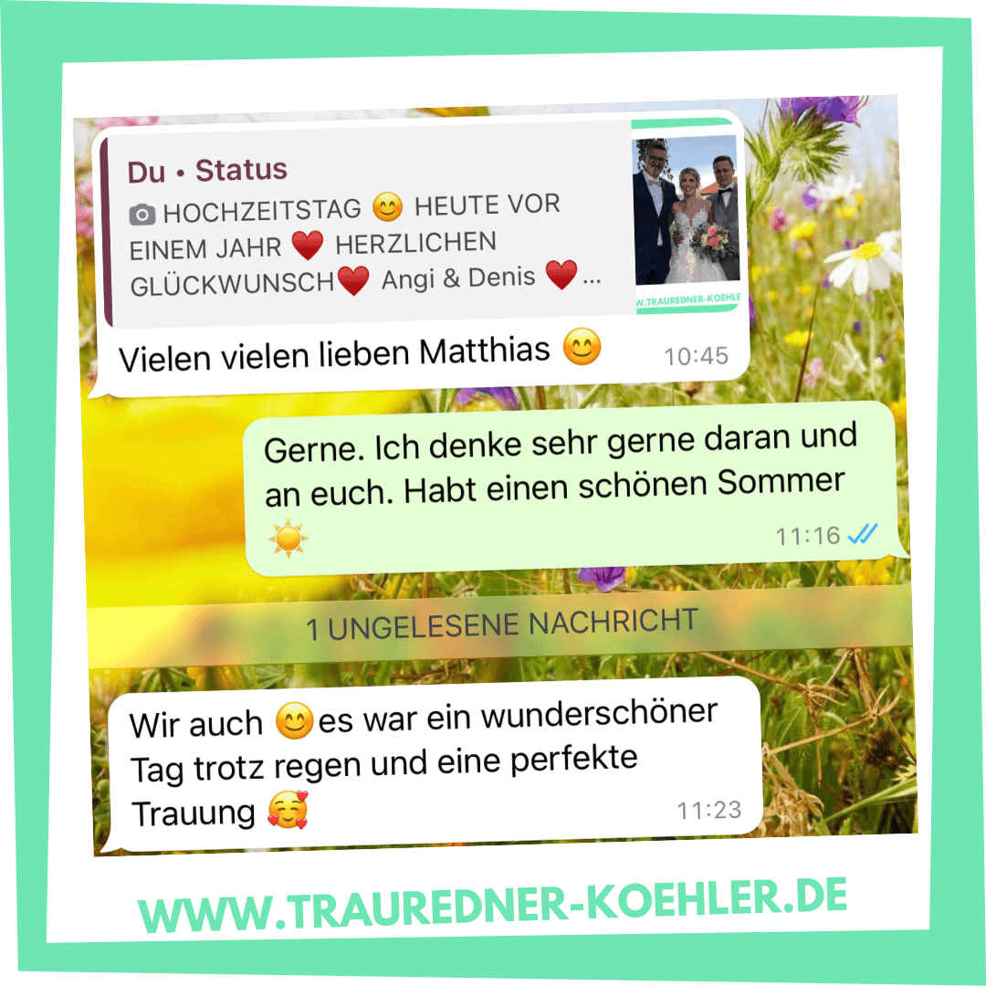 Ein ganz toller Tag für uns mit einem ganz tollen Trauredner Matthias Köhler.